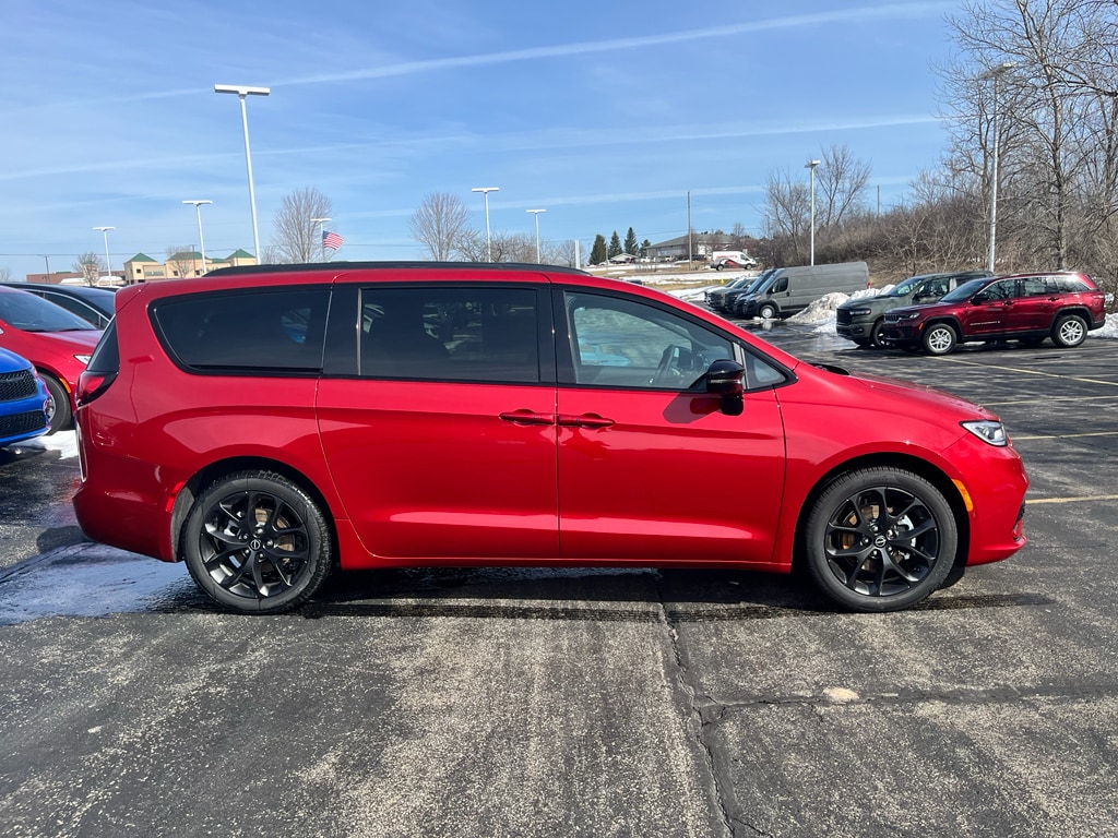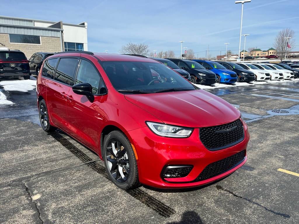 S Appearance Package: Black Day Light Opening Moldings; Caprice Leatherette with S Logo; Piano Black Interior Accents; Premium Fascia Upper/lower Grille with Black Surround; 245/50R20 BSW AS Self-Sealing Tires; Black Stow 'N Place Roof Rack; Premium Rear Fascia Black; 20 X 7.5 S-Model Aluminum Wheels Design 1; Anodized Ink Badging; S Badge. Safety Sphere: 360 Surround View Camera System; ParkSense Front/rear Park Assist with Stop. Quick Order Package 27L. 8 Passenger Seating. Red Hot Pearlcoat. **Equipment listed is based on original vehicle build and subject to change. Please confirm the accuracy of the included equipment by calling the dealer prior to purchase.**